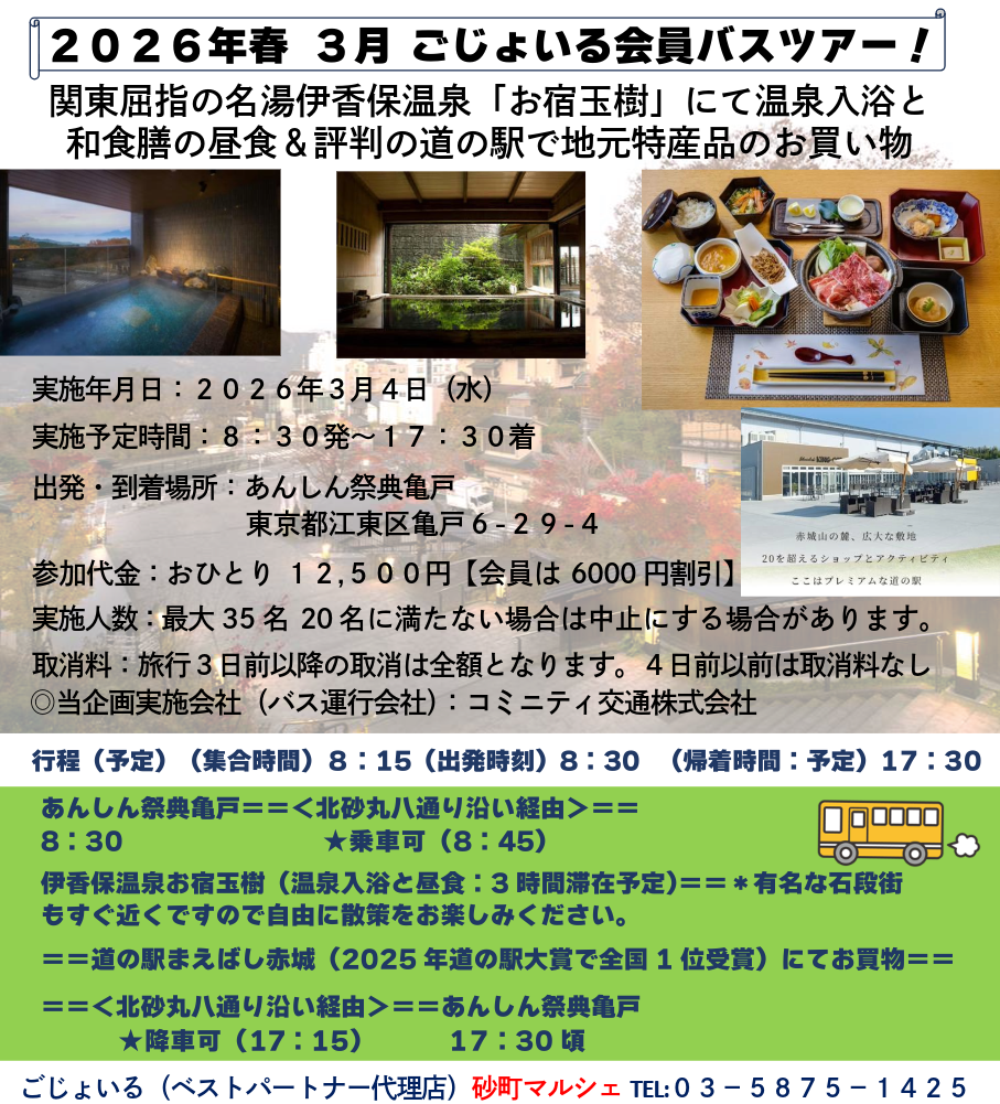 (北砂エリア・丸八通り沿い経由) - 参加代金:お一人様 12,500円