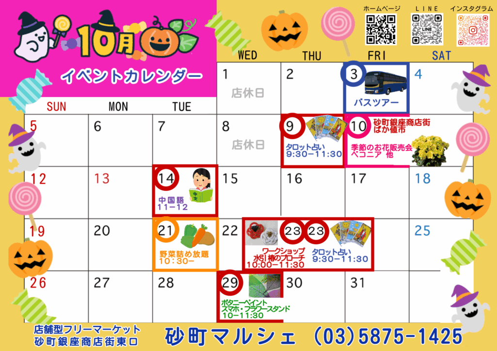 いつもご利用ありがとうございます。 10月のイベントと店休日のお知らせです。