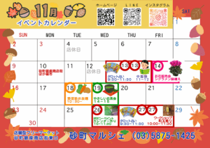 いつもご利用ありがとうございます。 11月のイベントと店休日のお知らせです。