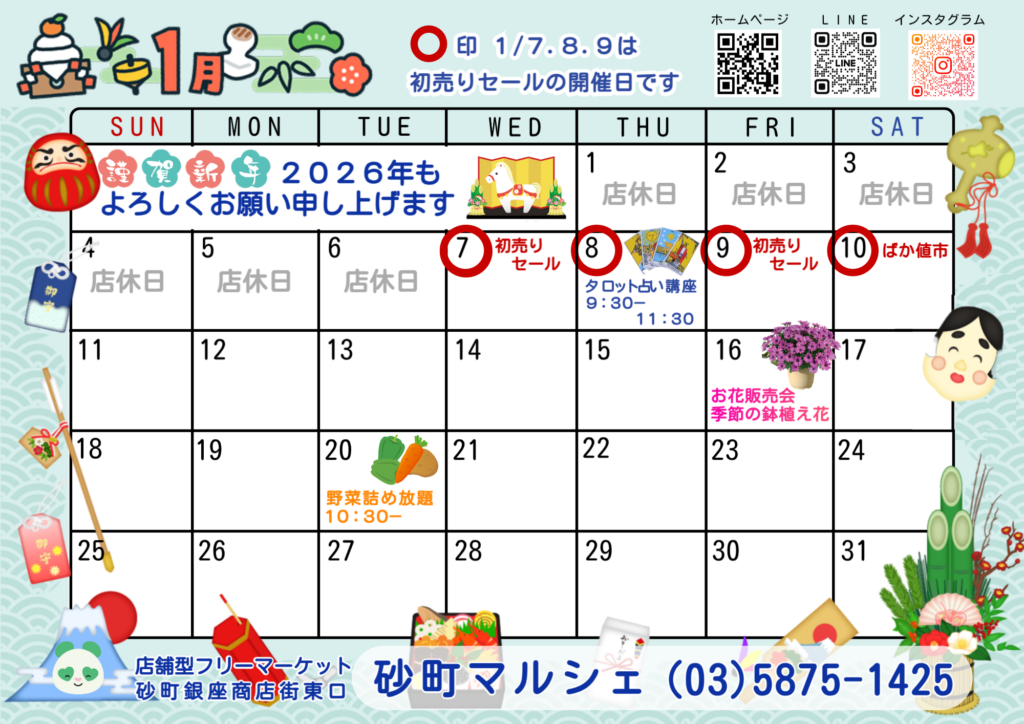新年は 1月7日(水)から新春初売で営業をいたします。