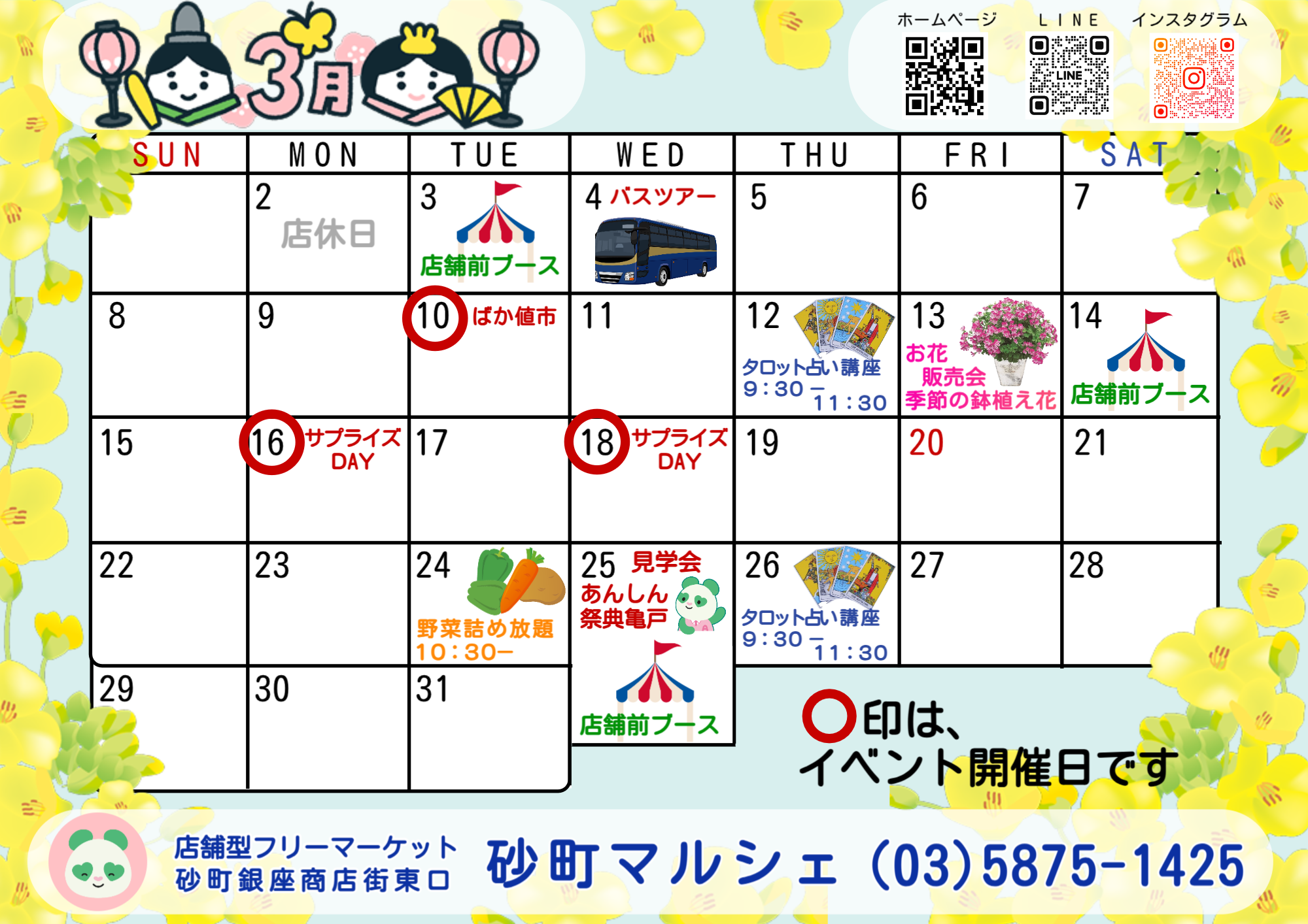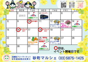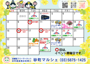 3月のイベントと店休日のお知らせです。